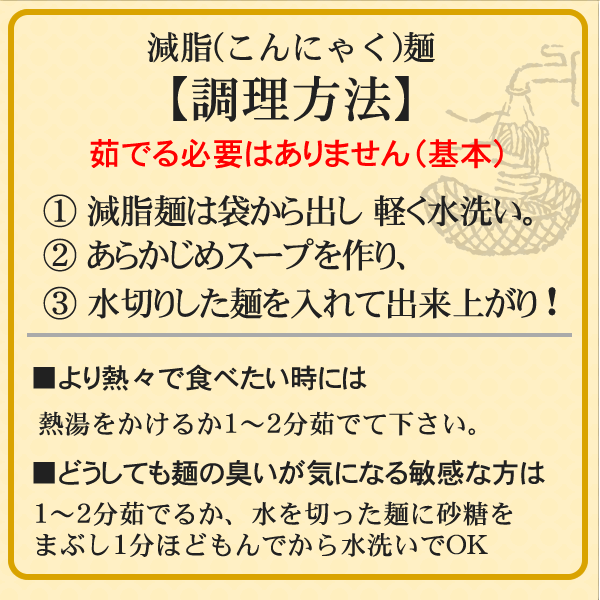 他社様で販売しているこんにゃくラーメンより少々お値段が高くなってしまいますが、それはぜひお召し上がりになって比較検討して頂きたいと思います。